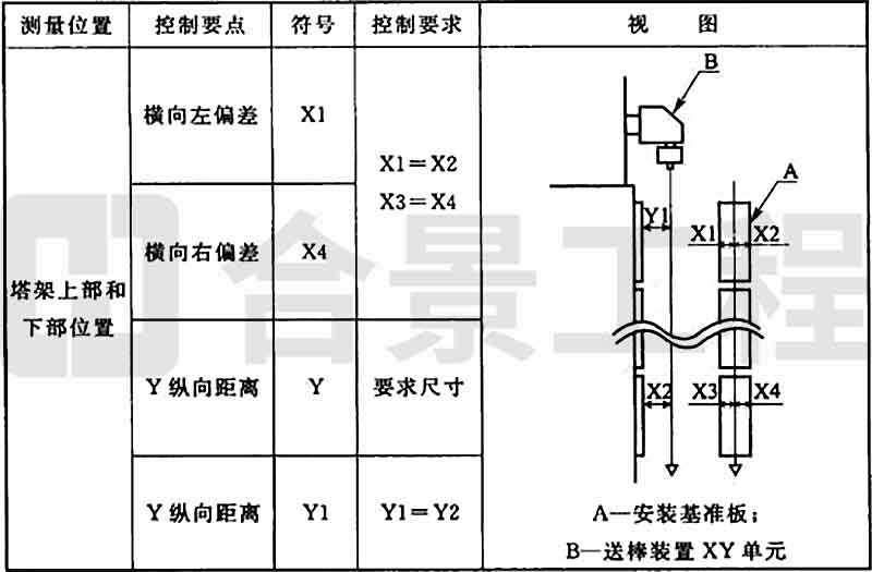 表9.3.2 單面光纖拉絲塔塔架的垂直度要求
